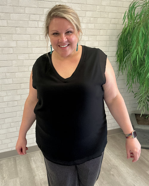 Chelsi Chiffon Barbie V-Neck Tank | Black
